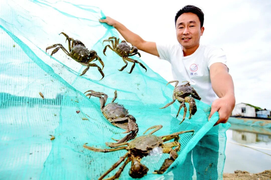 每年9—11月捕捞季,成蟹均重达3.2两以上,母蟹蟹黄占比超35%,公蟹蟹膏凝脂如玉,鲜甜度较普通蟹种提升40%。肉质细嫩、鲜美稍带甜味,蟹腿和蟹钳上的肉饱满、别具风味。当地还通过电商培训拓展线上线下融合销售渠道,带动周边农户增收,形成绿色高效、品牌化运营的生态养殖模式。