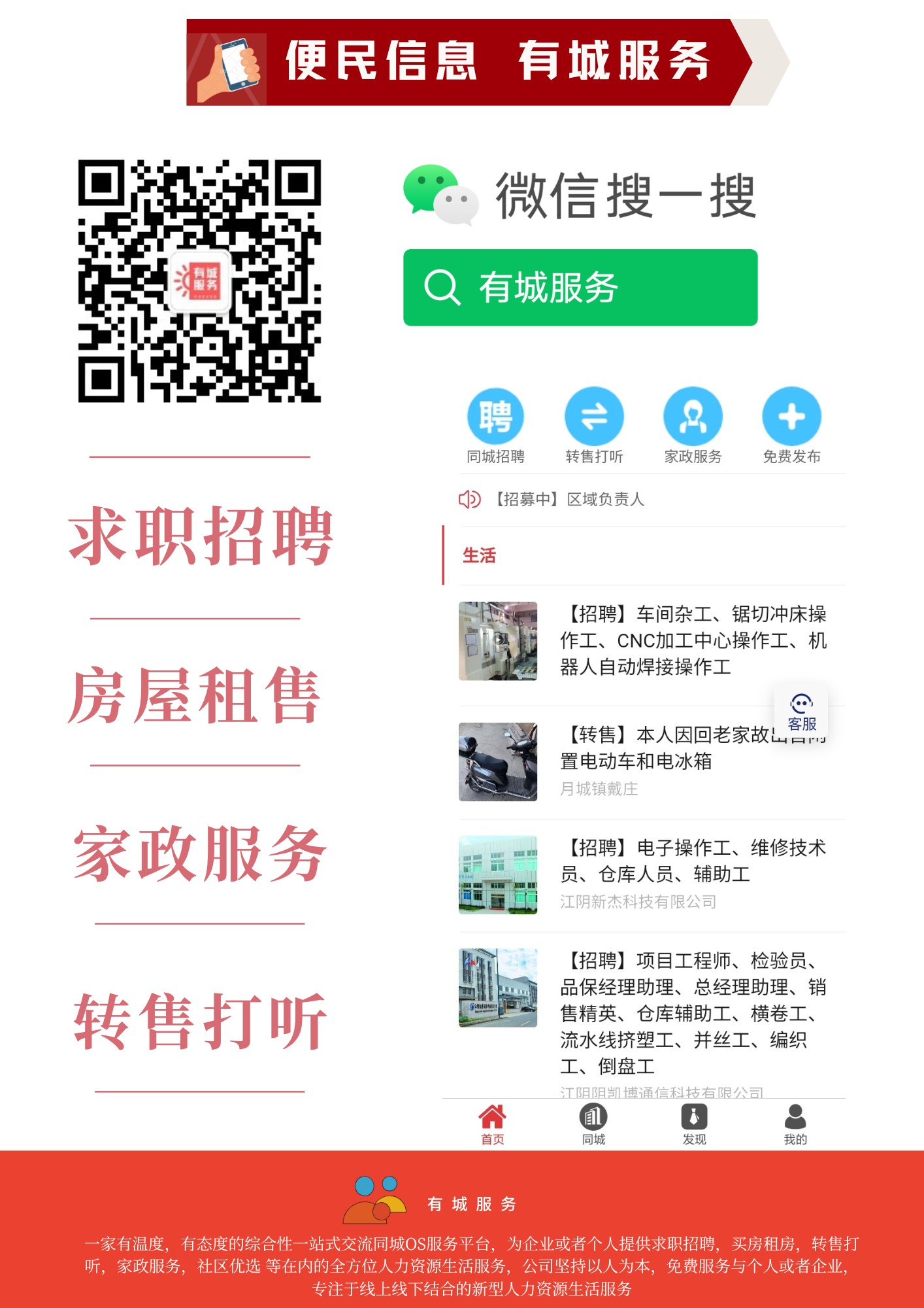 集公众号和小程序以及网站一体的同城分类信息一站式服务平台 目前拥有上万粉丝量。 为企业或者个人免费提供求职招聘,买房租房,转售打听,家政服务,社区优选 等在内的全方位人力资源生活服务,公司坚持以人为本,免费服务与个人或者企业, 专注于线上线下结合的新型人力资源生活服务
